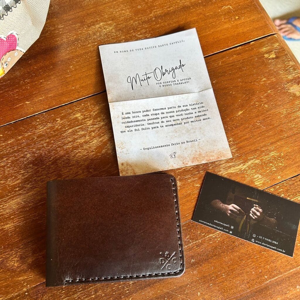 Minha expectativa foi superada desde a embalagem, o capricho no embrulho, o odor do couro, a textura e o design na simetria perfeita da carteira.