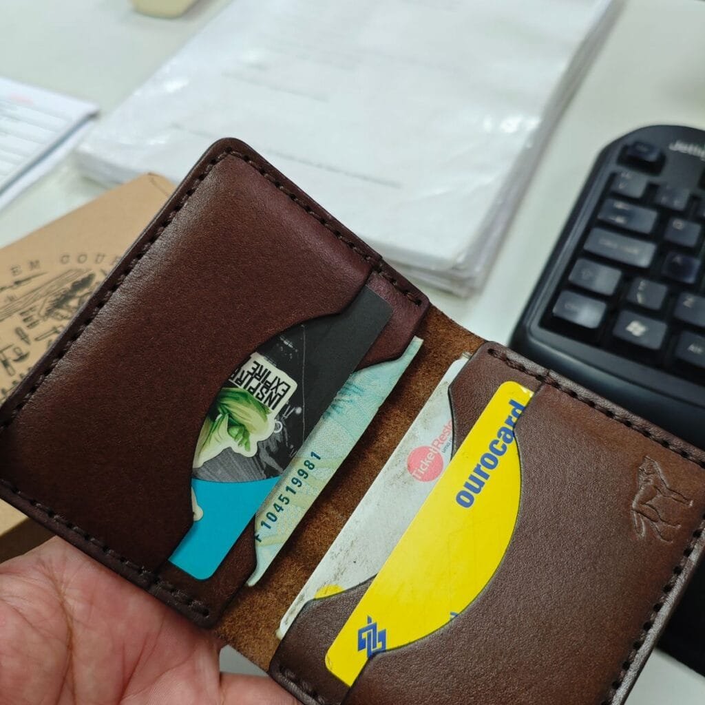 - Carteira de couro masculina e feminina, em couro legítimo nacional e de qualidade máxima;