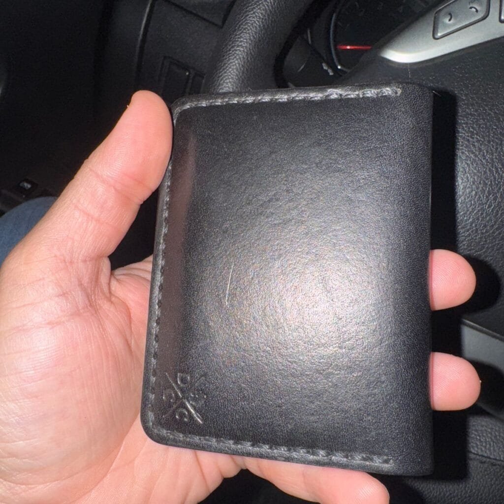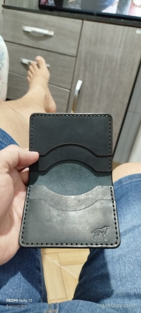 Carteira muito bom aparentemente gostei do tamanho super prática apesar de após dois dias de uso eu verificar que o couro ficou um pouco rececado mais já adquiri o bálsamo para fazer ela durar mais
